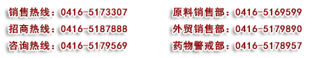 ●銷售熱線:0416-5173307 ●原料銷售部:0416-5169599 ●外貿銷售部:0416-5179890
