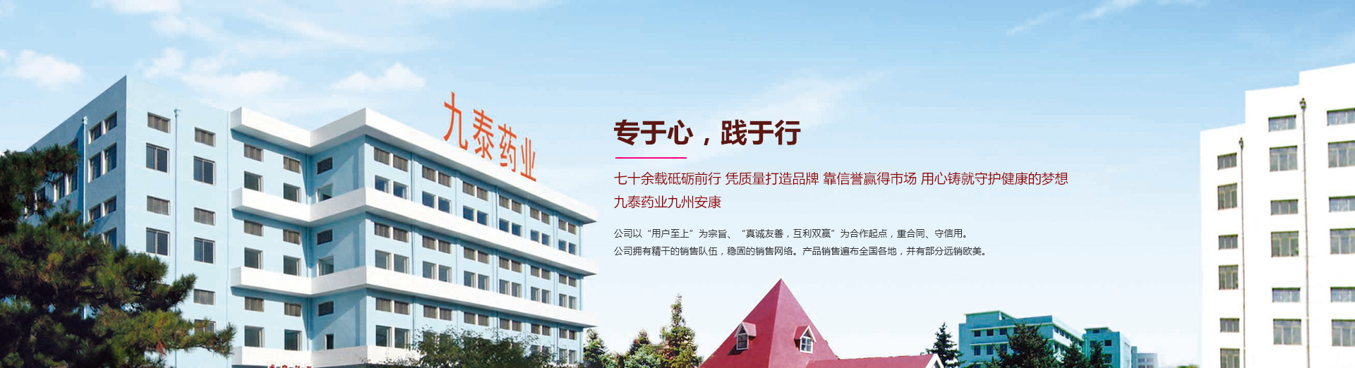 錦州九泰藥業有限責任公司是具有七十多年生產歷史的綜合性制藥企業。前身錦州制藥一廠始建于1951年,1998年改制為錦州九泰藥業有限責任公司。近年來各項經濟指標一直位于全國醫藥生產企業百強之列,是遼寧省重點制藥企業之一。曾先后榮獲:省級先進企業、省級文明單位、省級科技先導型企業省級用戶滿意企業等榮譽稱號...